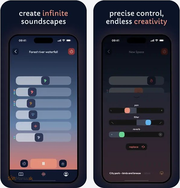 Zvuky môžete jemne dolaďovať pomocou efektov, ukladať hotové scény a mať ich dostupné vždy – aj bez internetu či po synchronizácii na viacerých zariadeniach. Auvio je zostavené tak, aby nepôsobilo rušivo: žiadne reklamy, žiadny chaos, len čisté a intuitívne prostredie.