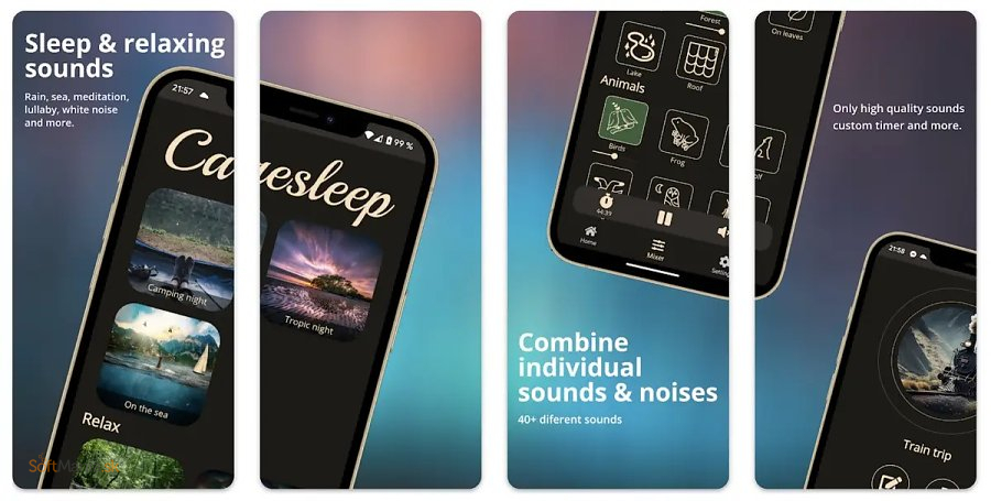 S Caresleep si môžete vytvoriť vlastný zvukový svet, ktorý vám pomôže lepšie spať, znížiť stres a nájsť chvíľu pokoja počas dňa. Aplikácia ponúka desiatky kvalitných relaxačných zvukov – od jemného dažďa až po ukľudňujúci biely šum – ktoré si môžete ľubovoľne kombinovať a prispôsobiť svojej nálade.