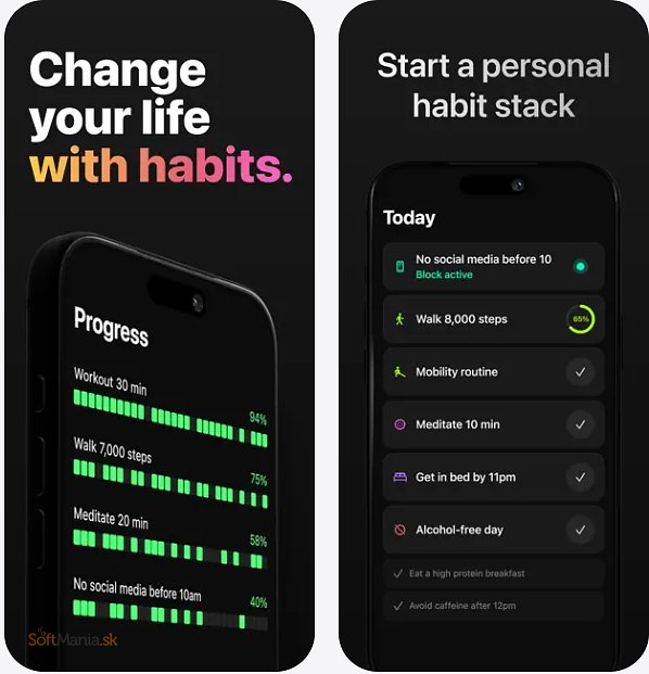 Keď sa dostanete do útlmu alebo stratíte motiváciu, Halo sa ozve samo – prostredníctvom iMessage vám pošle povzbudenie alebo praktickú radu. Prehľadné widgety, vizuálne zobrazenie pokroku a extra ochrana aplikácie robia z Halo silný nástroj pre každodenné zlepšovanie.